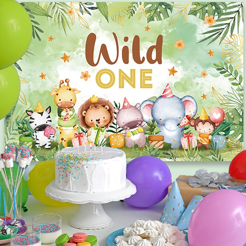 Wild One Birthday Decorations Backdrop - 1st Birthday Decorations for Boys Girls, Jungle Animal First Party Photo Background 180 X 120 Cm, Kids Cartoon Animal Theme Happy Birthday Banner Poster