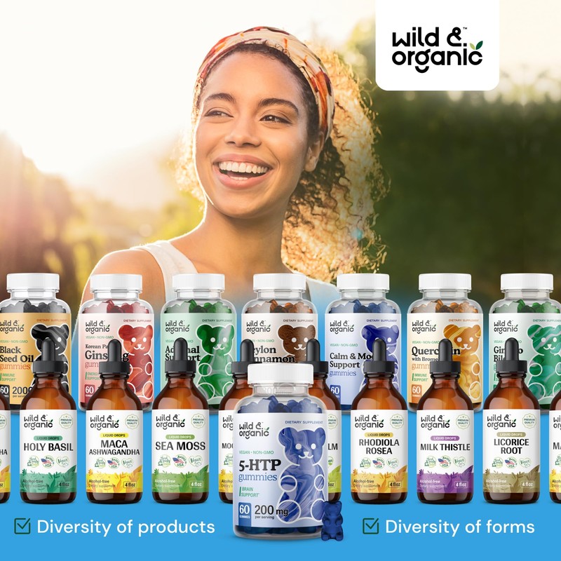 - Natural Formula: Wild & Organic 5 htp gummies are made with vegan ingredients, free from GMOs, and contain no artificial colors.