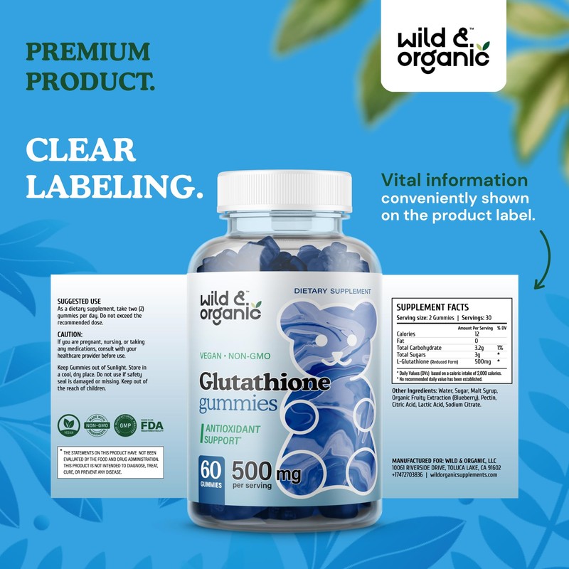 - 30-Day Supply: Each bottle contains 60 Wild & Organic glutathione chewables, providing a 30-day supply when taking two gummies per day.