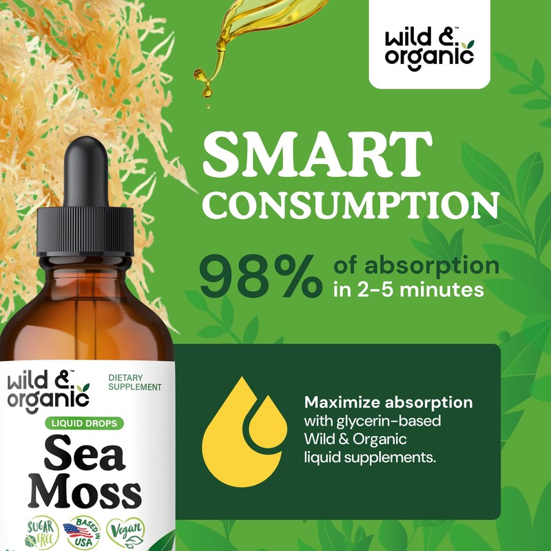 - Alcohol-Free: Wild & Organic sea moss liquid drops are vegetable glycerin-based, providing an alcohol-free tincture that is easy on digestion.