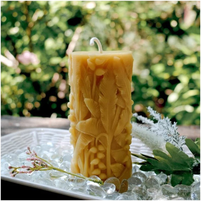Wild Rainforest Pillar Beeswax Candle / 100% All Natural Bees Wax Pillars/Palm Leaf with Berries/Rain Forest Candles/Adventurer Gift