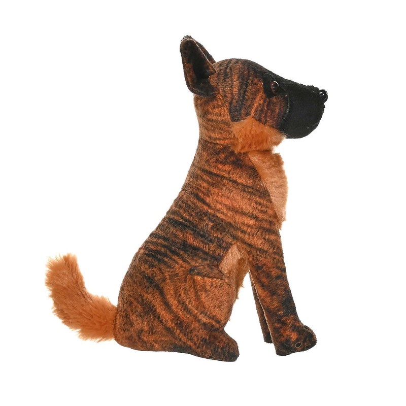 - Realistic, highly detailed, Malinois, eco friendly fill made of recycled water bottles, soft and cuddly, real sound of a Malinois barking when you press the activation spot.