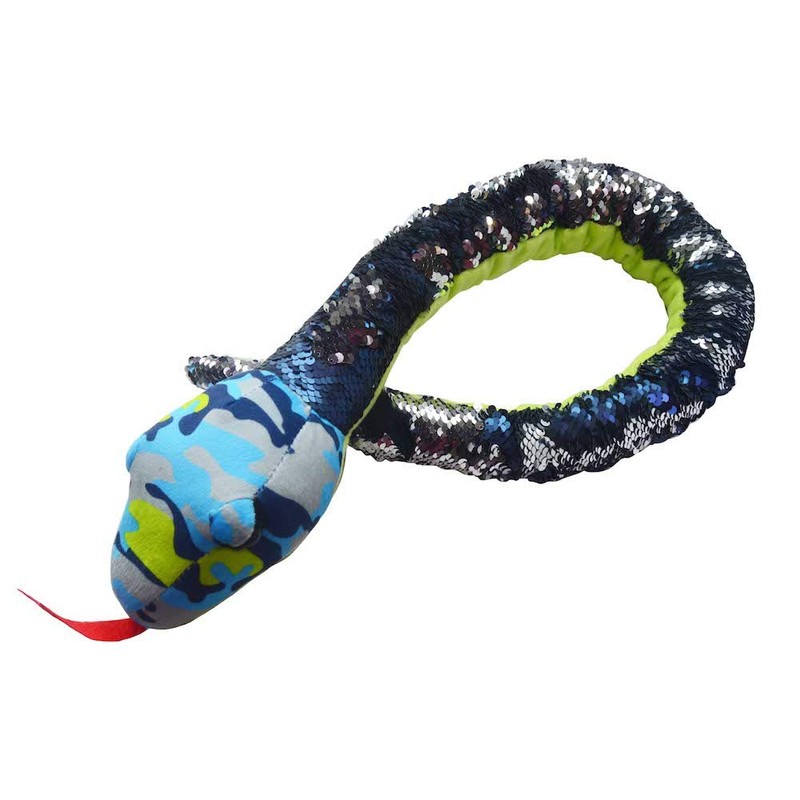 - This sequin plush toy Snake is a reversible Sequin on one side and soft and cuddly plush on the other side