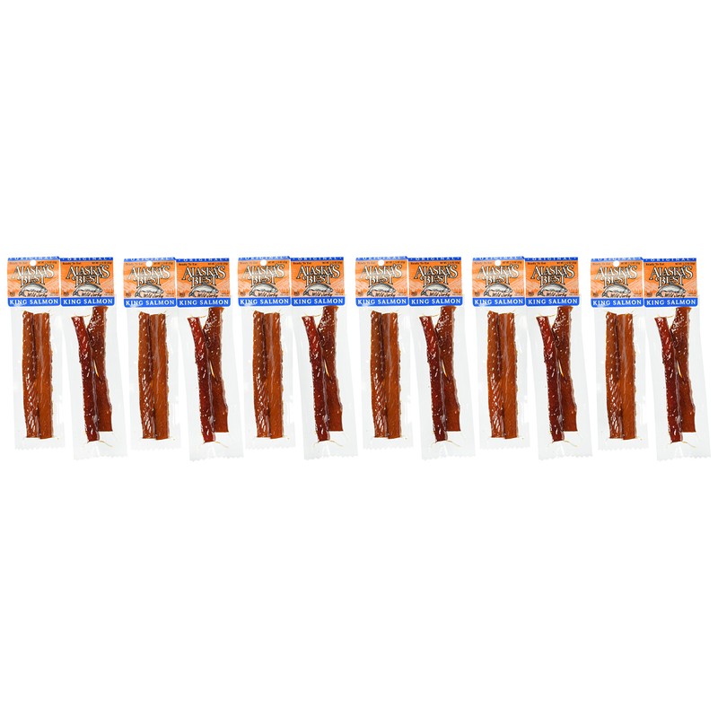 Our best selling grab and go, perfect for a healthy, easy and delicious snack it's loaded with Omega-3 fatty acids and packed with great taste! Alaska's Best smoked salmon jerky from Trapper's Creek is made from all-natural, wild salmon harvested from icy-fresh Alaska waters. Each salmon is hand filleted, carefully seasoned and slow smoked over cherry and alder wood for over 24 hours. Perfect for a healthy, easy and delicious snack, it's loaded with Omega-3 fatty acids and packed with great taste! There are 12 packages of 1.13 oz sticks per order. Please order Original, Peppered, or Teriyaki.