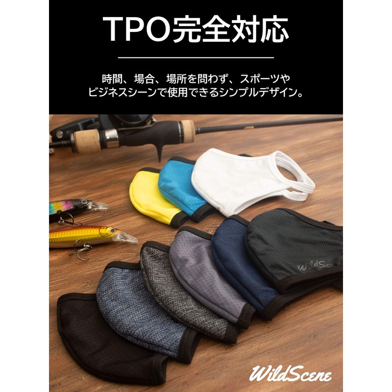 - A sports mask developed by a fishing equipment manufacturer: Wild Scene Sports Mask is a new release of a tough outdoor mask with a breathable and reusable design from Wild Scene, a sports brand that is amongst the top shared brands in Amazon's fishing gear rankings. We have received many high praise reviews from business and sports related repeat customers. The fabric is glossy and smooth to the touch; not only the perfect mask for sports, but great for any TPO (time, place, and occasion). Material: Polyester, Color: Black, White, Gray, Deep green, Indigo, Unisex: One size fits all