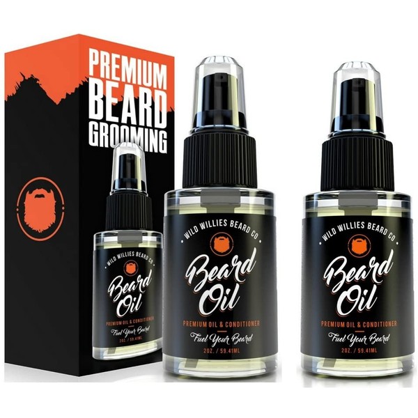 Wild Willies Beard Oil for Men. Made with 10 Natural Conditioner Ingredients & Organic Essential Oils. Promotes Fast Growth, Restores Moisture & Delivers a Deep Softener Treatment. Two 2oz. Bottles