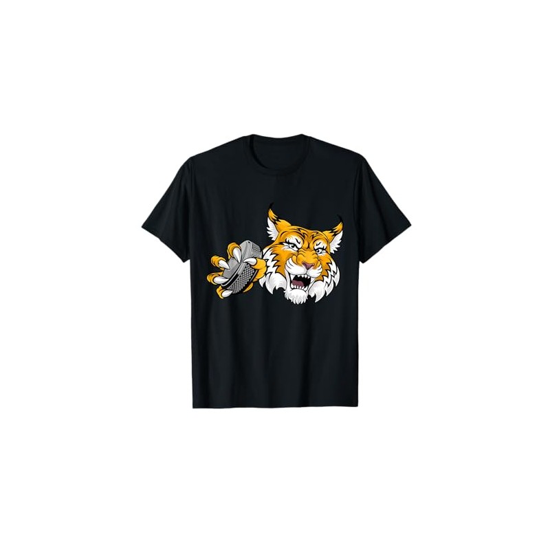 Wildcat Bobcat Lynx Ice Hockey Puck Cartoon Character T-Shirt