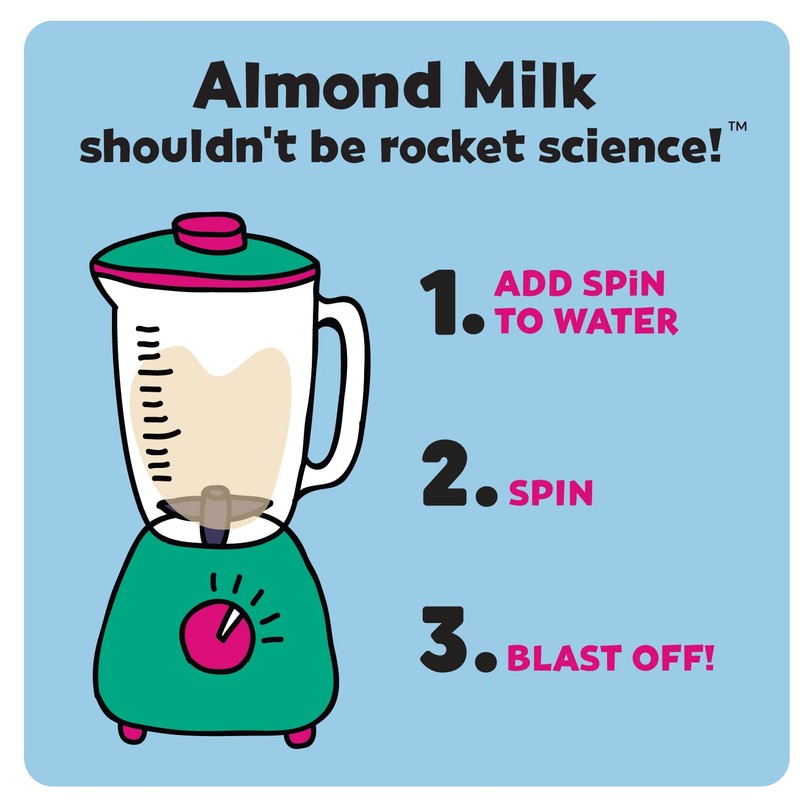 - Almond Milk Shouldn’t be Rocket Science – Unsweetened SPiN is made with one ingredient: organic blanched almonds (no skins) – Zero funky preservatives, gums, or vegetable oils. – To make Almond Milk add 1-2 Tbsp SPiN to 1 cup water & blend for 20 seconds. Double the SPiN to make creamer.