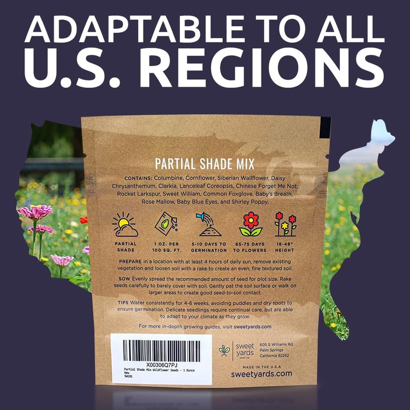 Wildflower Seeds Partial Shade Mix - 1 Ounce Over 7,000 Open Pollinated Annual and Perennial Seeds