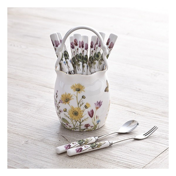 Wildflower wrinkle table (large) + ceramic teaspoon/fork 11P / 야생화 주름수반(대)+도자기 티스푼/포크 11P