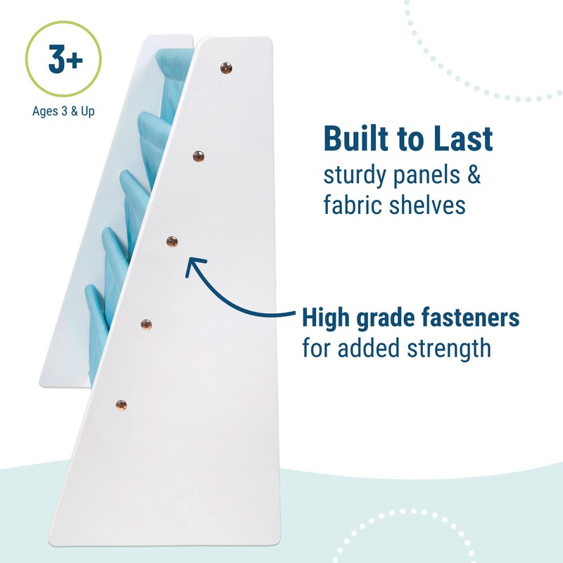 - BUILT TO LAST – Whether you’re displaying lightweight works of art or heavy, bulky hardbacks, Wildkin’s kid and nursery bookshelf is strong enough to store it all with ease. Made from Melamine Faced Chipboard and MDF boards, complete with metal poles, this kids storage organizer was designed with durability and longevity in mind.