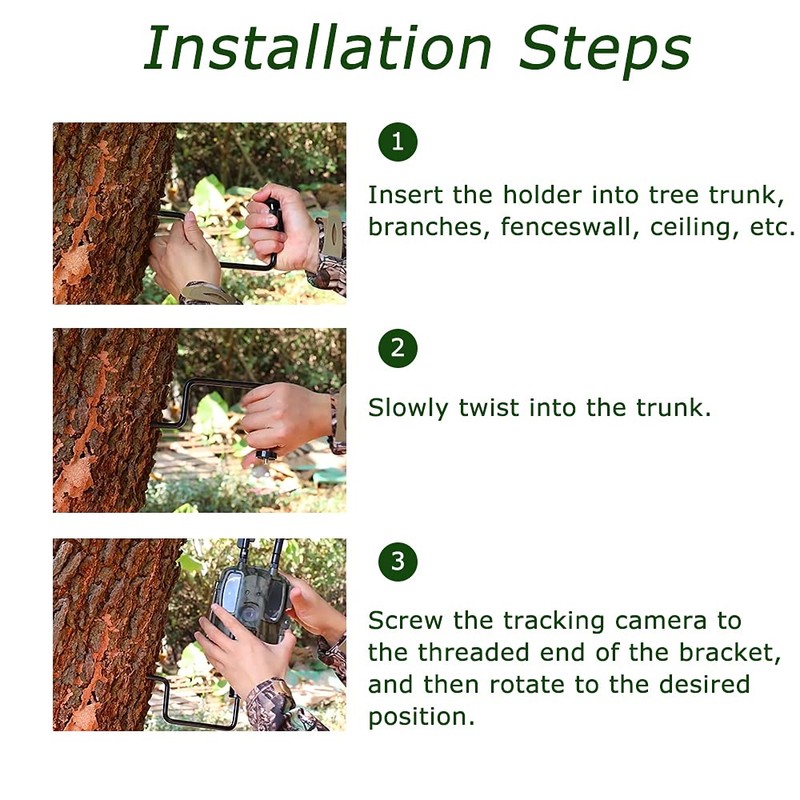 The wildlife camera tree mount holder is used throughout the hunting season to help you easily observe the trail of prey or the feeding situation of the raised animals.