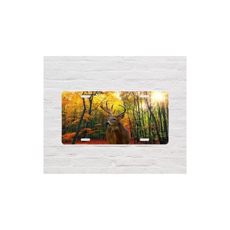 Wildlife Vanity Aluminum Front License Plate (Deer in Fall Forest)
