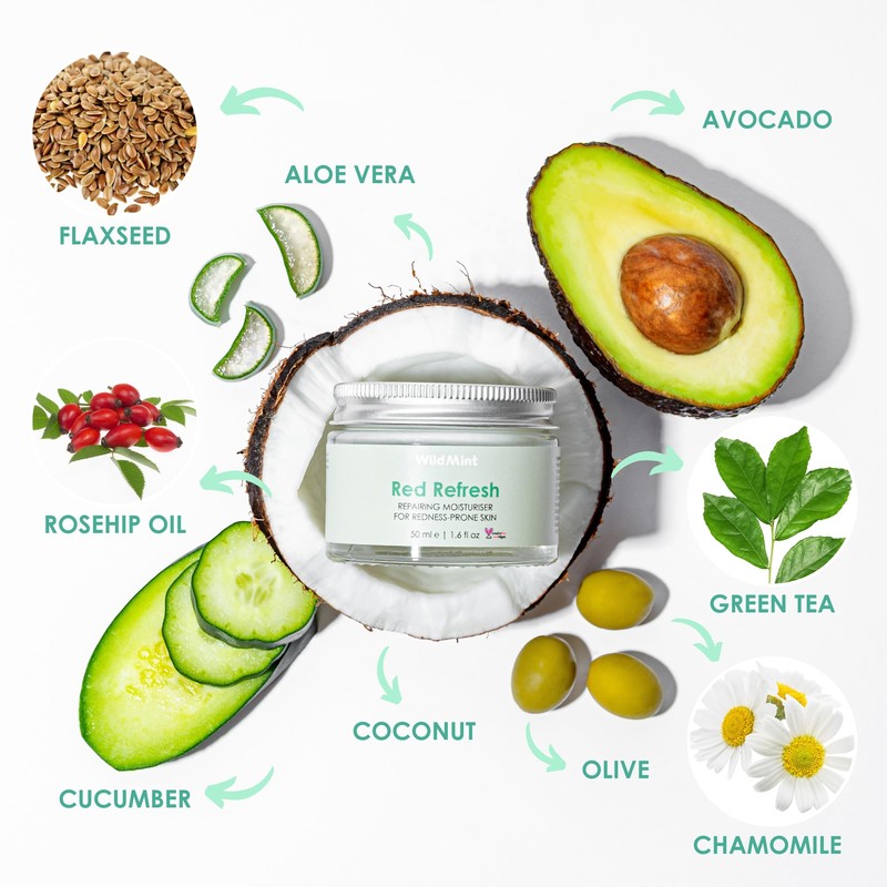 WildMint Red Refresh Natural Moisturiser | Hydrating Face Cream for Redness Prone, Sensitive, Dry, Mature Skin | Repairs & Calms Redness with Macademia | UK Made Vegan & Cruelty-Free Skincare | 50ml