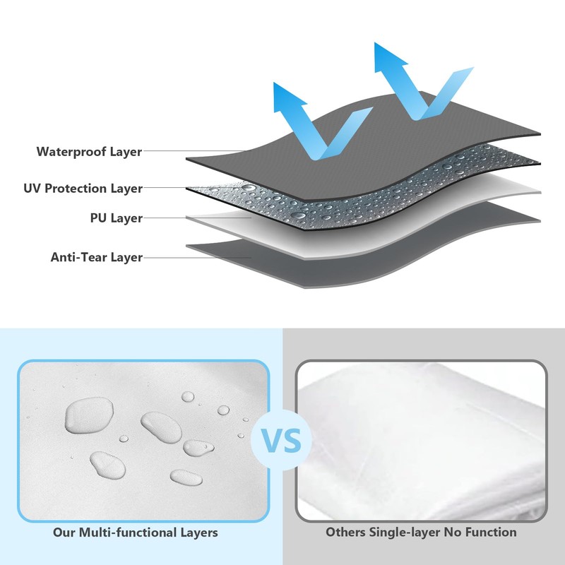 - Fabric: WILDPATH canopy tent sidewall is made of heavy-duty 300D Oxford fabric with a silver coating on the back that blocks 99% of UV rays. Resistant to all types of weather, it provides superior water, wind and dust resistance, effectively blocks rain and keeps the interior dry and comfortable.