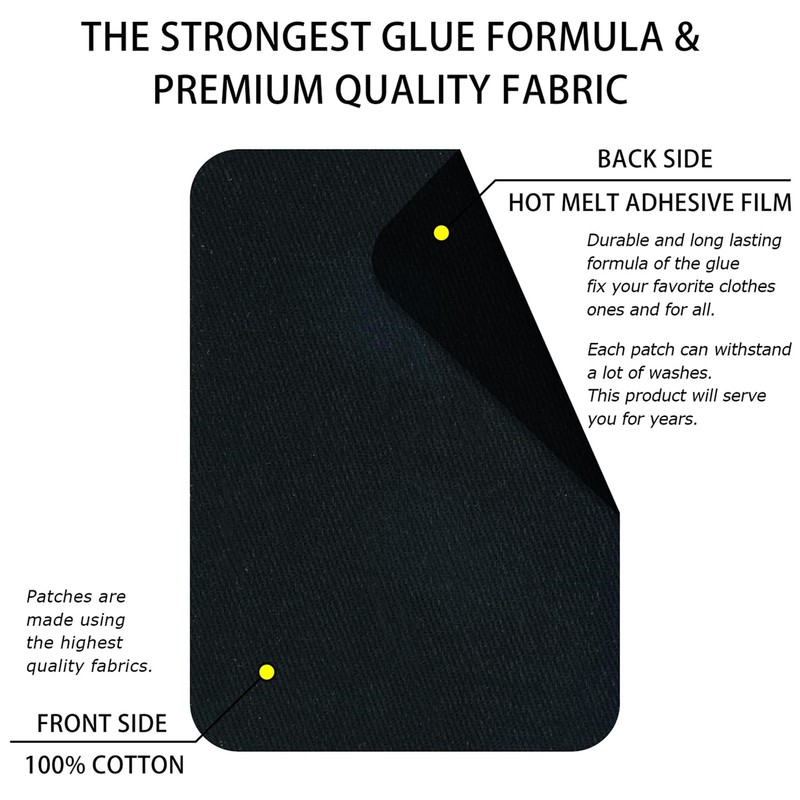 WILDREEDS Premium Quality Fabric Iron on Repair Patches 100% Cotton Iron on Patches for Clothing Inside & Outside Strongest Glue 3" by 4-1/4" (7.5 cm x 10.5 cm)-Balck