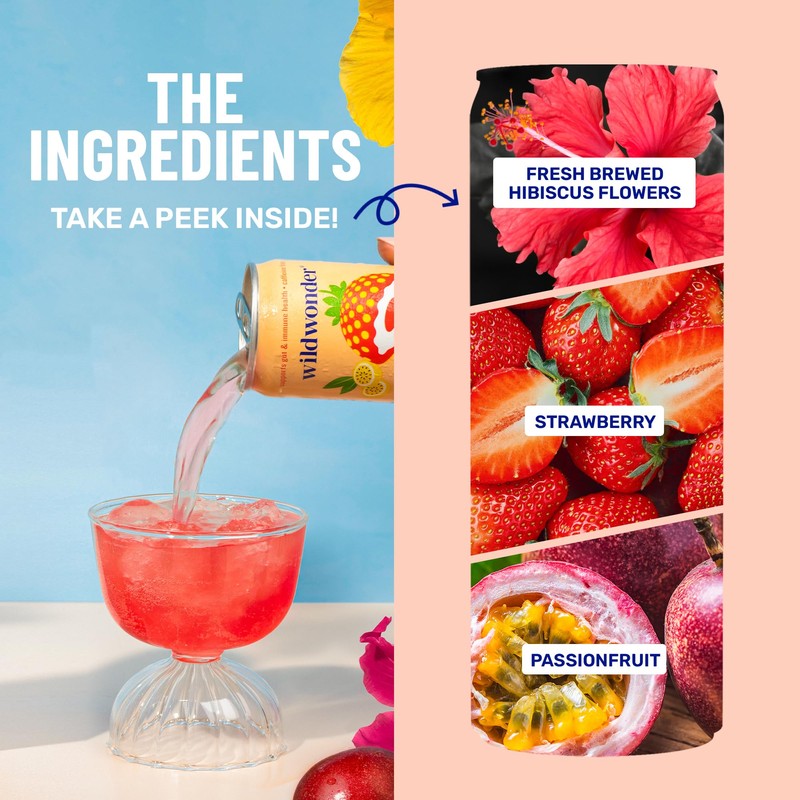 - STRAWBERRY PASSION: A tropical fusion between passion tea and a strawberry popsicle balanced with freshly brewed hibiscus and elderflowers. A naturally sweet and juicy refresher delicious enough to be sipped on its own, or can be used as a mixer for mocktails & cocktails. One sip can ignite your immunity and inspire your passion.