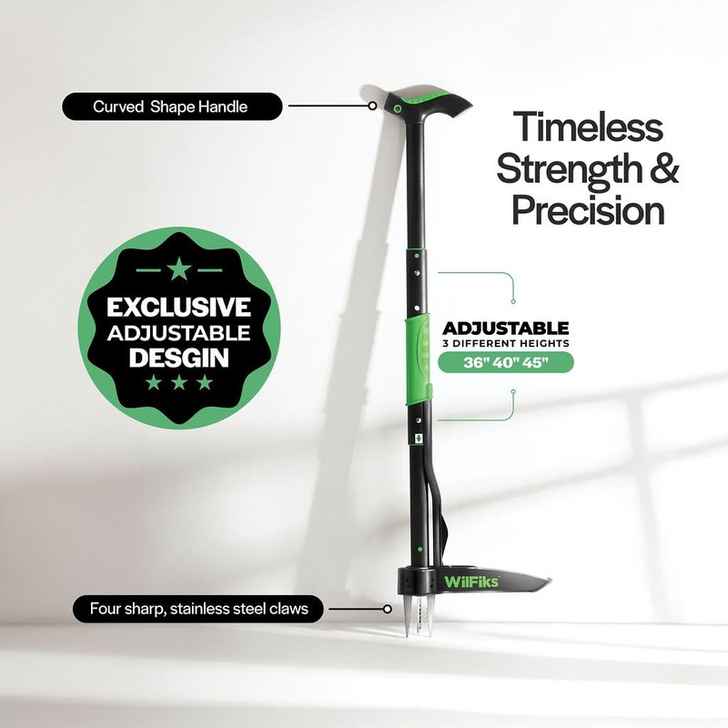 - ? Adjustable Long Handle Design C This Weed Puller Tool features a 3-level adjustable handle (36", 40", and 45"), allowing you to stand while removing weeds. The ergonomic, non-slip handle provides a comfortable grip and better control, reducing hand fatigue during long weeding sessions. No more back strain or knee pain! This essential garden hand tool makes weeding easier and more comfortable.
