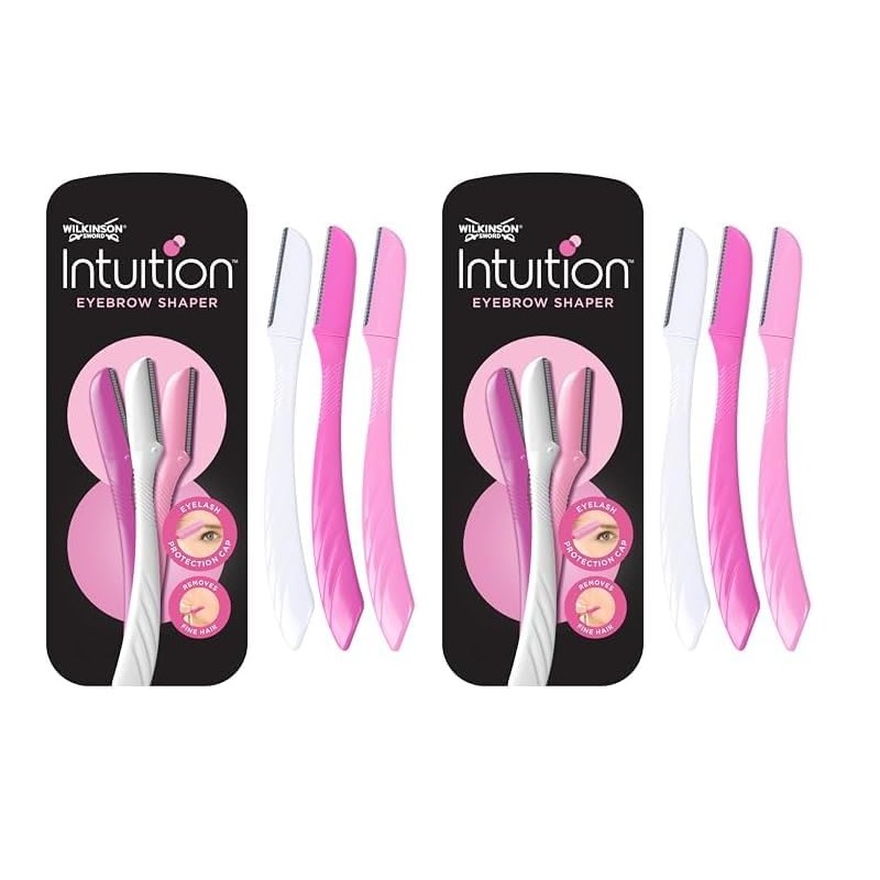 Wilkinson Sword - Intuition Augenbrauenformer für Frauen, 3 Rasierer, Gesichtshaarentferner und -trimmer, Peeling-Dermaplaning-Tool (Packung mit 2)