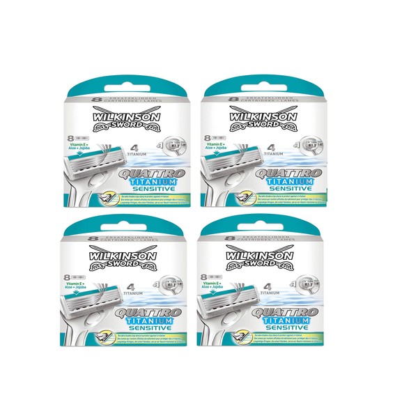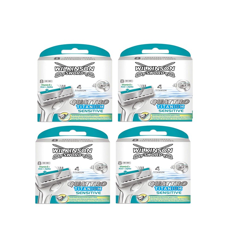 Product Description Wilkinson Quattro Titanium Sensitive Replacement Blades Pack of 4 ingredients/Ingredients, Vitamin E, Aloe Jojoba address Manufacturer/importer protect Street 110, 42659 Solingen