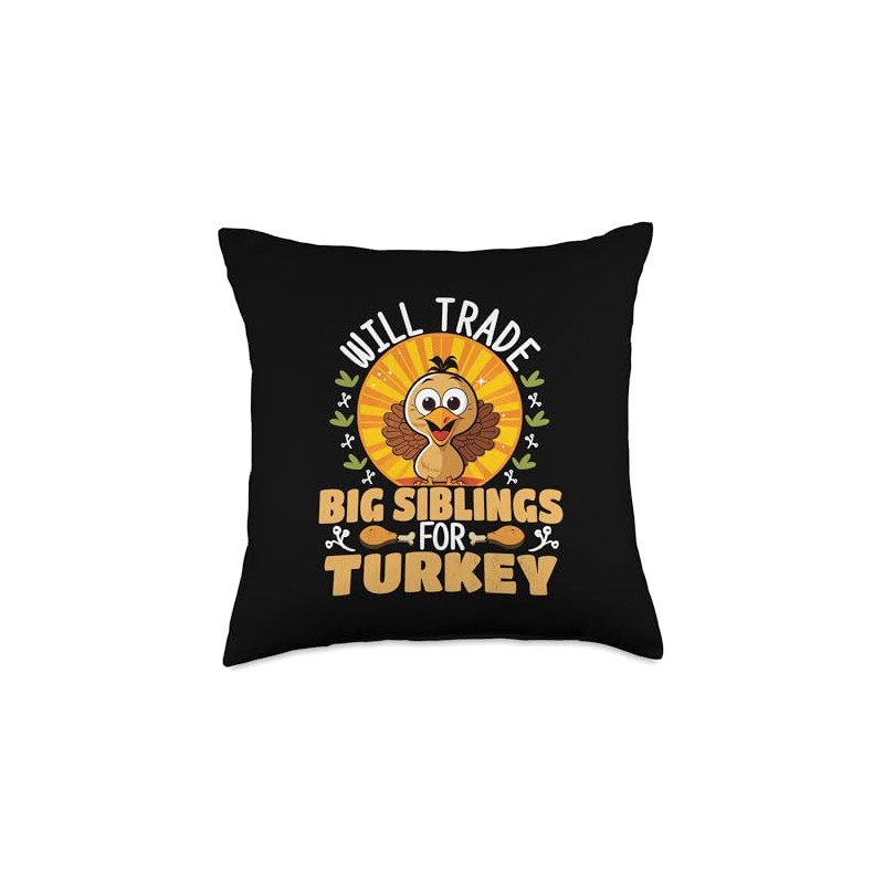 Will Trade Big Siblings for Turkey Funny Thanksgiving Throw Pillow