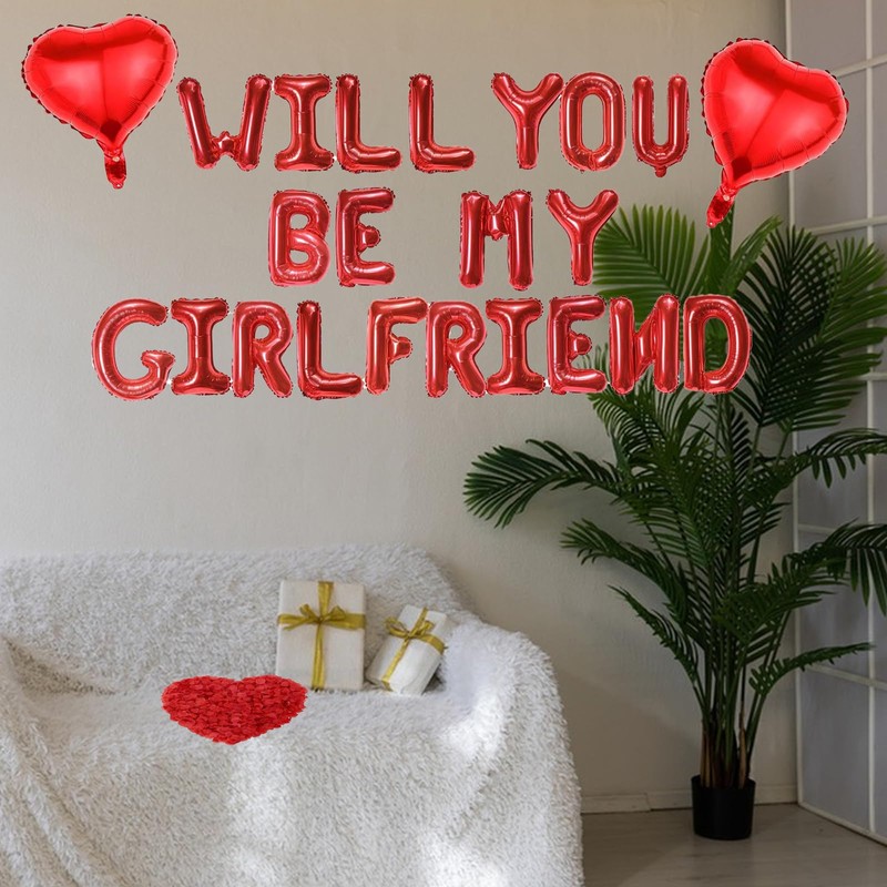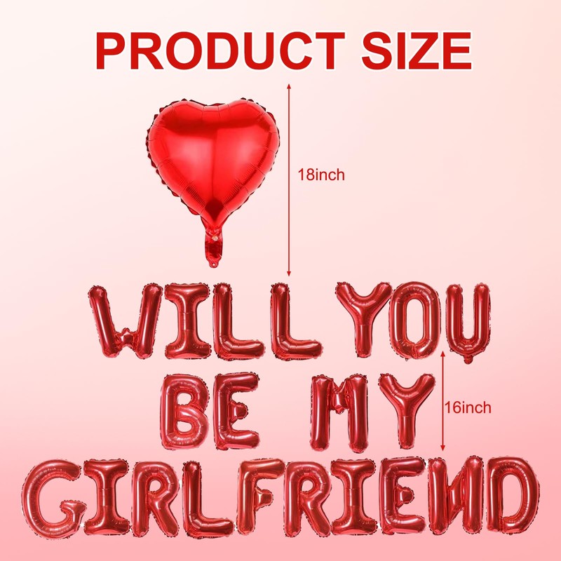 - Package Contents: Will you be my girlfriend includes 21 foil letter balloons, 4 red heart-shaped balloons, and 500 artificial rose petals. Combined with these elements, will you be my girlfriend balloons can not only deliver affectionate messages in a stylish way, but also add romance and magic to your venue.