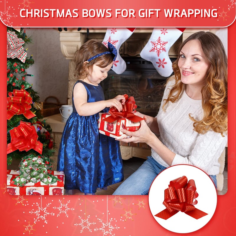 WILLBOND Christmas Wrapping Bow, Ribbon Wrap Pull Bows Wrapping Accessory, Baskets, Wine Bottles Decoration (12 Pieces)