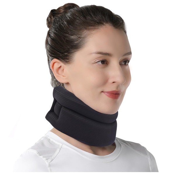 Willcom Neck Brace -Foam Cervical Collar - Soft Neck Support Relieves Pain & Pressure in Spine - Wraps Aligns Stabilizes Vertebrae - Can Be Used During Sleep (Comfort, Black, Medium)