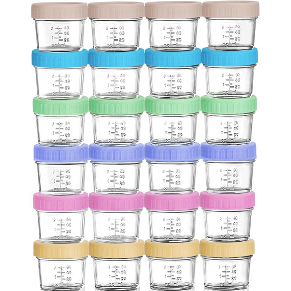 - GREAT VALUE 24-PACK 4OZ GLASS BABY FOOD JARS: The jars come with easy-to-see, non-fading embossed measurement marks showing up to 2oz, however, when filled to the rim, the jar’s capacity is 4oz. Perfect portion size for your baby or toddler and the 24-pack makes it easy for you to offer a variety of homemade foods for a healthy and balanced diet.