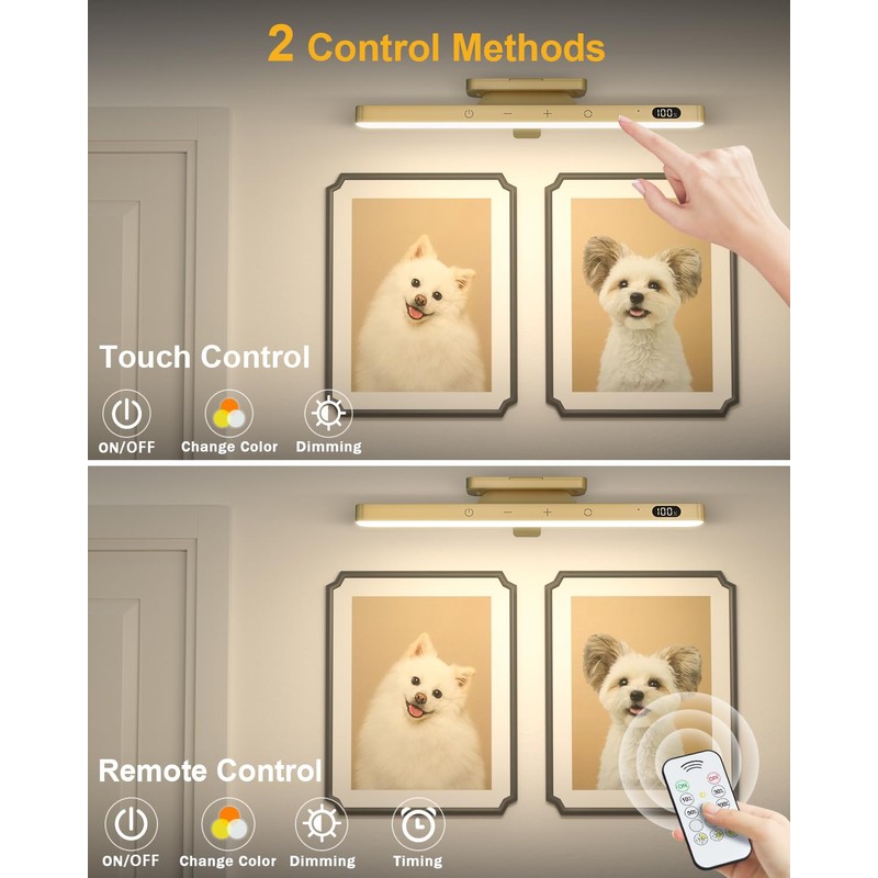 - ??Sensible Touch und FernbedienungsfunktionenGalerie lampe verfgt ber hochempfindliche Touch-Tasten zur einfachen Einstellung von Helligkeit und Farbtemperatur, um verschiedene Beleuchtungsbedrfnisse zu erfllen. Zus?tzlich ist diese bildbeleuchtung kabellos mit einer vielseitigen Fernbedienung ausgestattet, die nicht nur aus der Ferne gesteuert werden kann, sondern auch ber eine Timer-Funktion (15/30/60 Minuten) verfgt. Egal, ob Sie manuelle Einstellungen oder die Fernbedienung bevorzugen, diese bilder beleuchtung bietet Ihnen eine bequeme und personalisierte Benutzererfahrung.