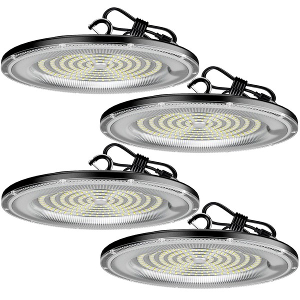 WILLGOTOP 350W 4 Pack UFO LED High Bay Light, 50000LM Shop Lights, Industrial Lighting, 110-275V IP66 Waterproof for Workshop, Warehouse, Barn, Garage, Factory, 6500K Daylight with US Plug