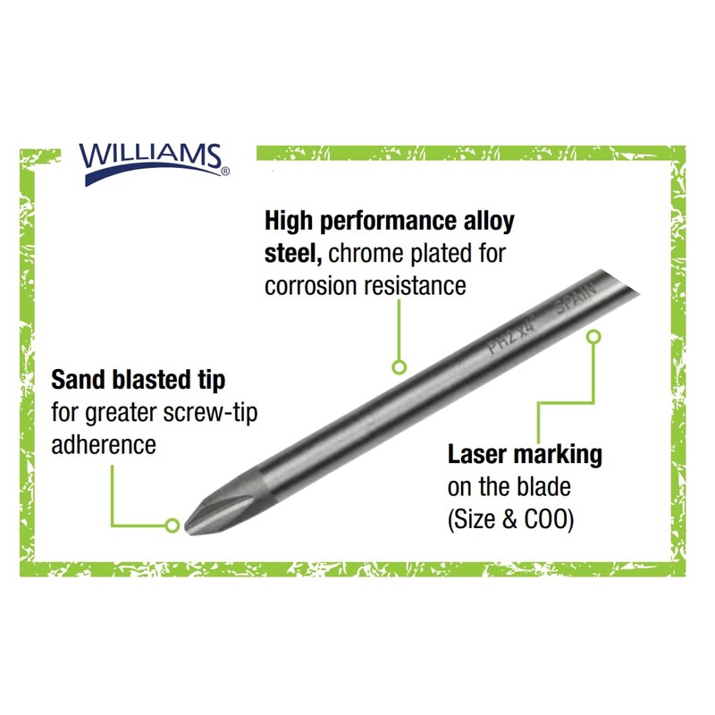 - Comfort Grip: Williams SUPERTORQUE screwdrivers feature a 3-component handle for maximum user comfort and force transmission.