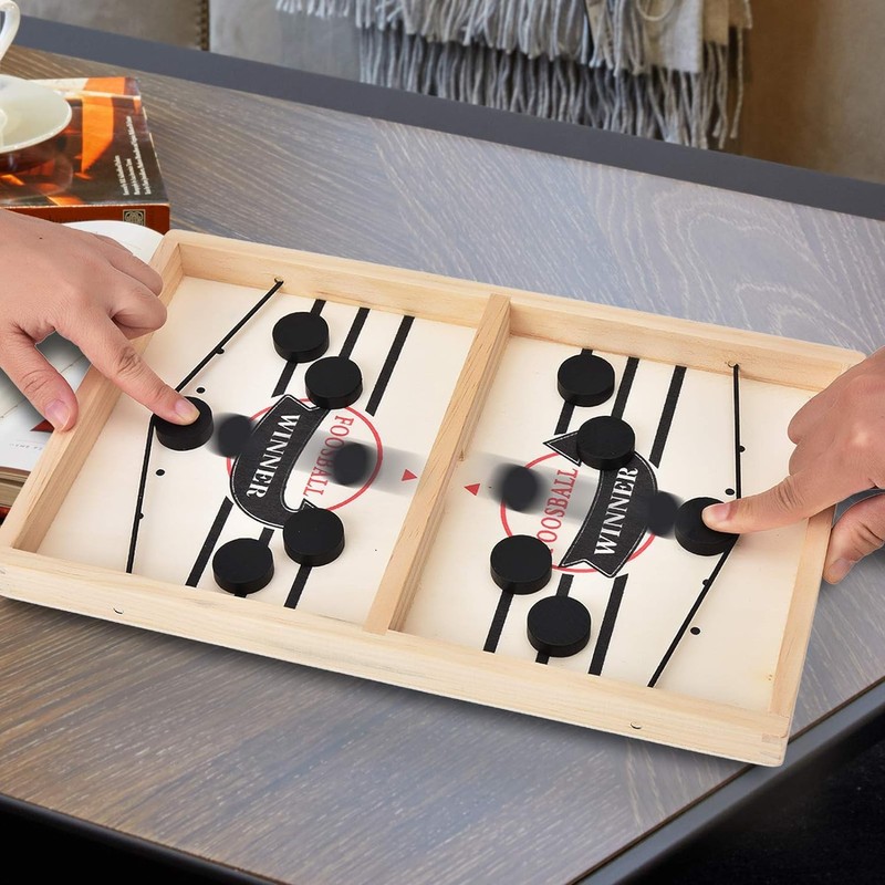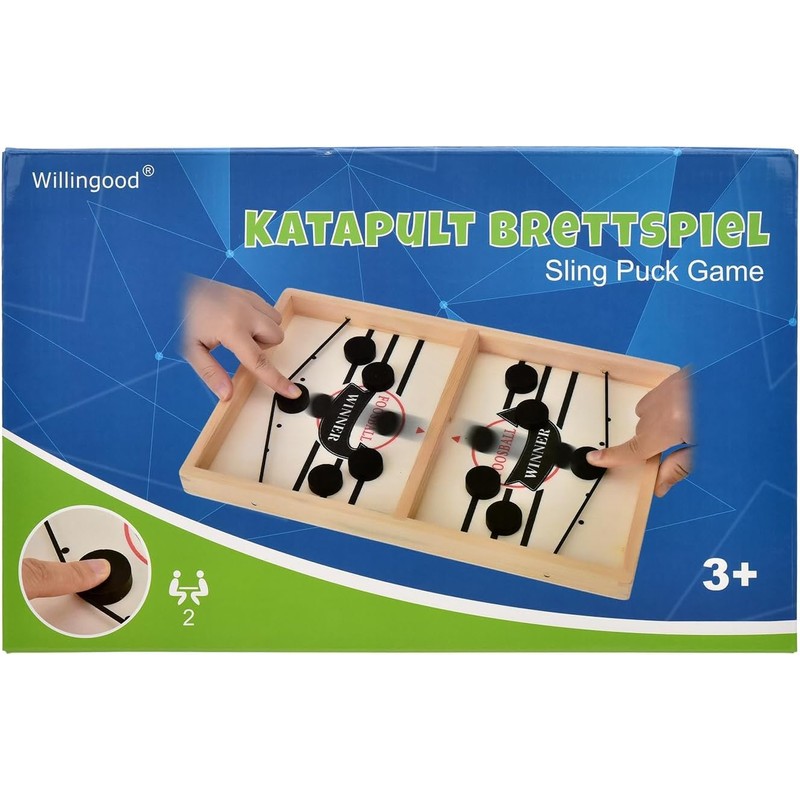 Willingood Wooden Sling Shot Hockey Game, 2-in-1 Table Hockey Catapult Board Game, Portable Party Game Set, Tabletop Game