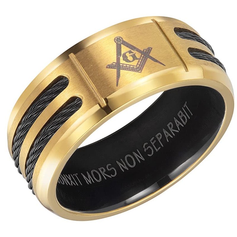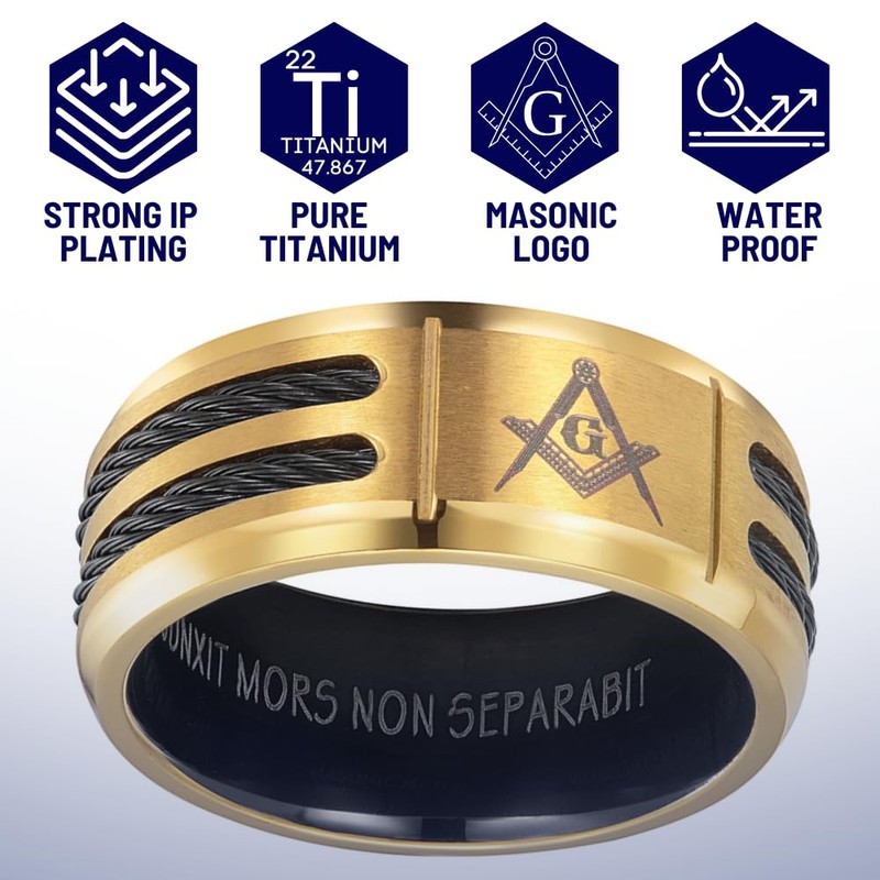 Willis Judd MasonicMan Mens Titanium Freemason Masonic Ring Latin Engraving I...