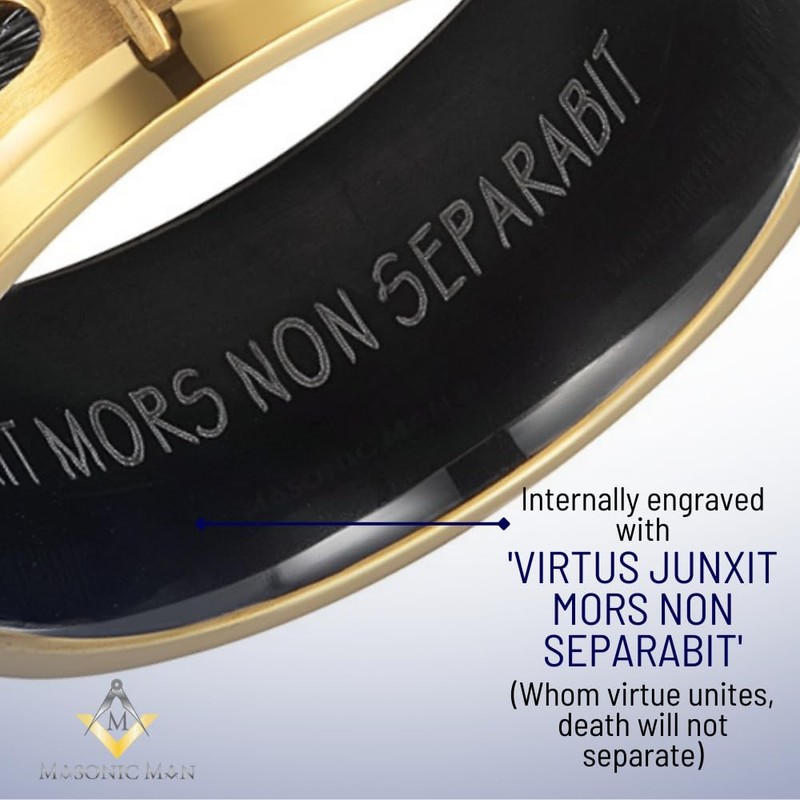 • ENGRAVED INSIDE with VIRTUS JUNXIT MORS NON SEPARABIT - translates as WHAT VIRTUE HAS JOINED TOGETHER DEATH SHALL NOT SEPARATE