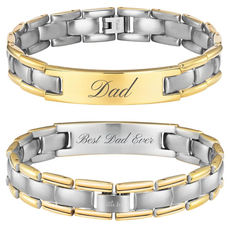 Willis Judd Mens Two Tone Titanium DAD Bracelet Engraved Best Dad Ever with Gift Box & Link Removal Tool