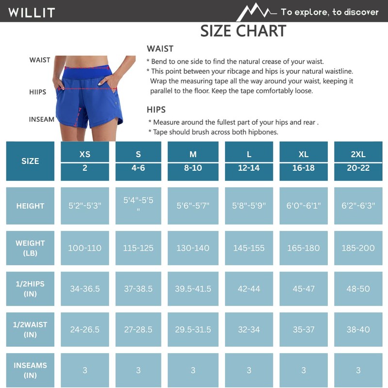 Willit - Pantalones cortos de natación para mujer, de 3 pulgadas, con forro breve, secado rápido, UPF 50+, azul real, S