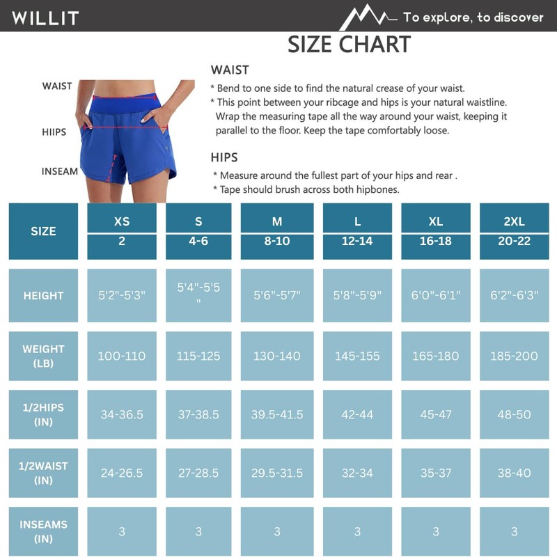 WILLIT Women's 3" Quick Dry Swim Board Shorts with Brief Liner UPF 50+ Swimming Bottoms Trunks Black XL