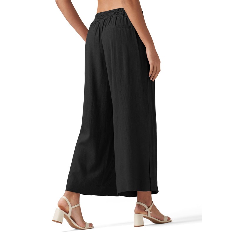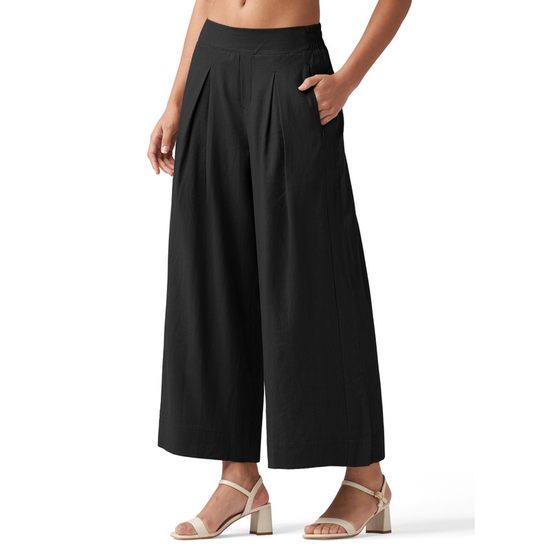 - Designed with a mid-waisted fit and elastic back waist, it features front pleats that add a touch of modern flair. The roomy, wide-leg cut flatters every body type, beautifully sculpting your curves