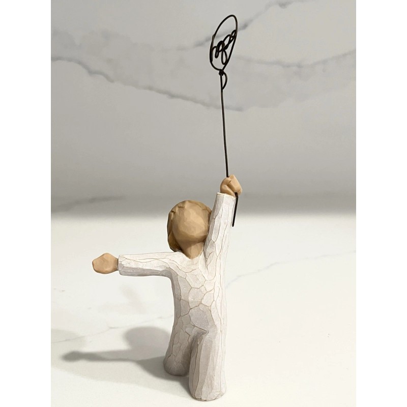 This hand-painted resin figure from Willow Tree features a childlike figure holding a delicate string with the word “Hope” attached, symbolizing optimism and encouragement. Designed by artist Susan Lordi, this piece captures a quiet moment that reminds us to stay uplifted through life’s challenges.