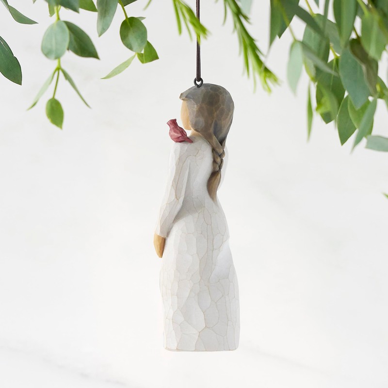 Willow Tree Messenger Ornament, Red Cardinal on Figure’s Shoulder, Bringing Comfort and Love from Afar, A Reminder That Those we Love are Always with us, Sculpted Hand-Painted Ornament