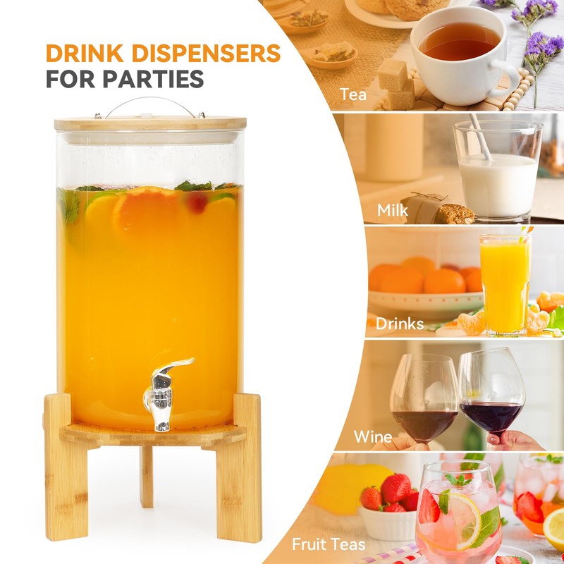 - Sturdy & Elegant Presentation: Solid bamboo wood base prevents tipping, while crystal-clear glass showcases drinks beautifully. Elevates any event as sophisticated drink dispensers for parties.