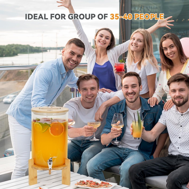 Party-Ready Capacity: Perfect as drink dispensers for parties, it effortlessly serves 20-25 guests. Fill it with sangria, iced tea, or fruit-infused water for stunning self-service.