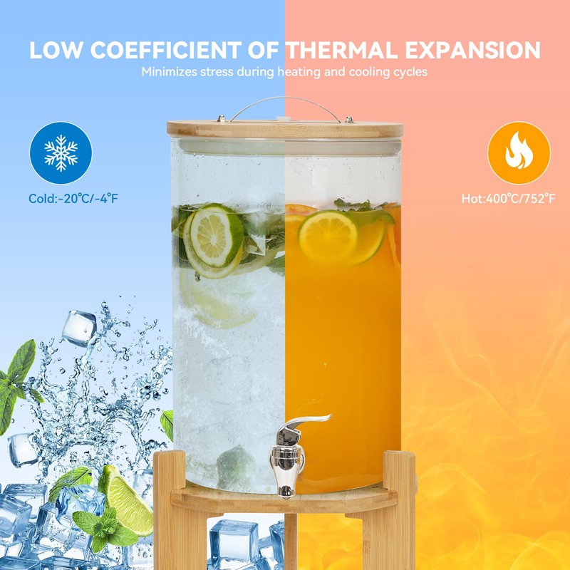 Transform how you serve drinks at parties, barbecues, and family events with our elegant 8L (2.1-gallon) glass beverage dispenser. Crafted from durable, lead-free borosilicate glass and paired with a sturdy bamboo stand, this dispenser combines sophistication with unmatched functionality—making it the go-to water container with spigot for hosts who demand both beauty and reliability.