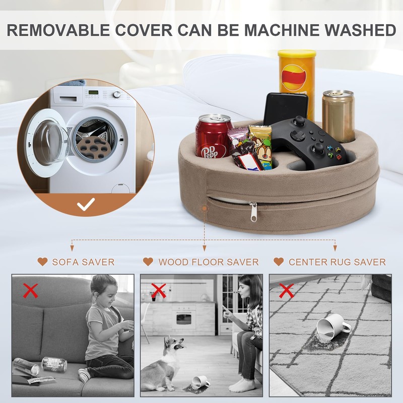 - EASY TO CLEAN: The cover of the couch drink holder pillow is removable and can be machine washed when need be, though wiping it with a damp cloth to get off just about everything you can spill or splash on it.