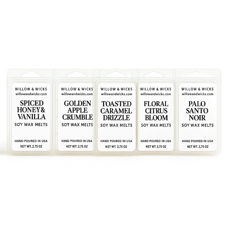 Willow & Wicks Wax Melt 6-Pack – Seasonal Showcase Bundle – Spiced Honey, Apple Crumble, Caramel, Lavender, Floral Citrus, Palo Santo – Soy Wax Clamshells – Strong Scent Throw