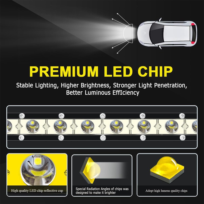 - 【High Performance】Quick cooling aluminum alloy heat sinks and high-quality heat conduction silicone gel can effectively extend the lifespan of the light bar to over 30,000 hours, IP67 waterproof, Dust-tight and Shockproof.