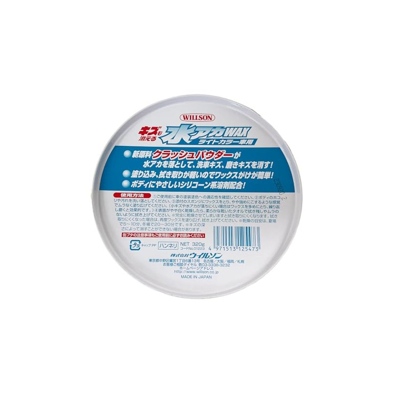 WILLSON 01223 Water Wax, For Light Color Cars, 11.3 oz (320 g), Scratch Disappear