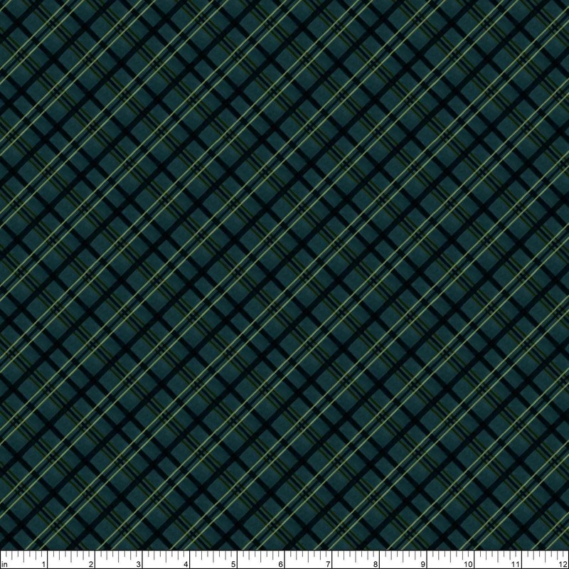 Wilmington Prints - Garden Gate Roosters - Diagonal Plaid - Teal