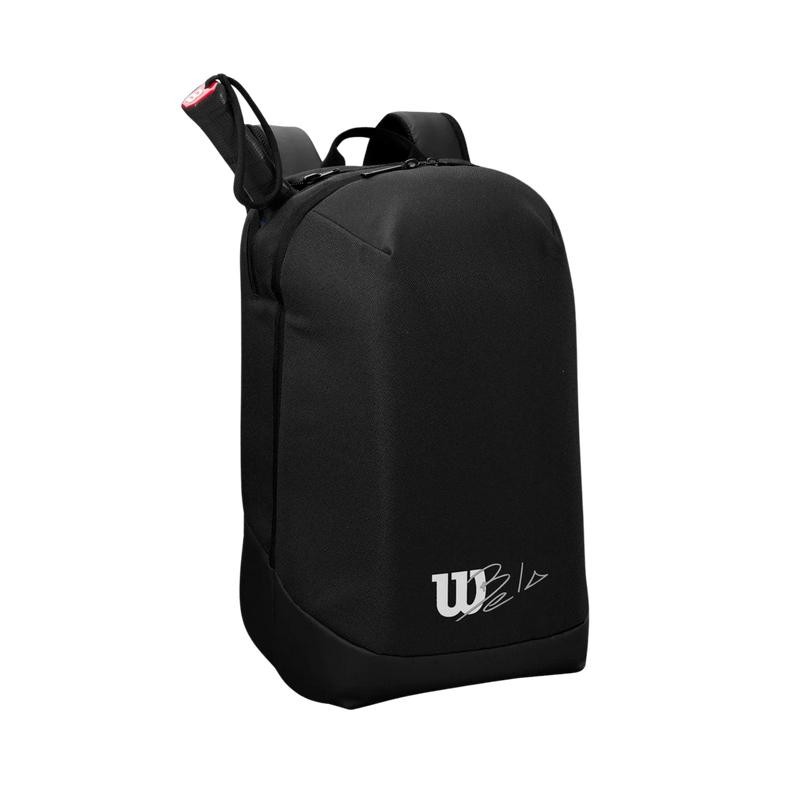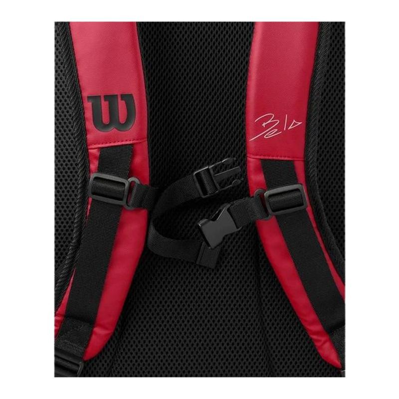 Clean. Sharp. Fresh. Everything needed in a padel backpack all in one package. Inspired and co-designed by the legend Fernando Belasteguín, this padel backpack conveniently holds everything required for stepping up to the next level. Made with a textured polyester fabric and signed with the Wilson x Bela logo, this bag will stay looking clean even when taken to the court. There is a compartment for rackets, clothes, accessories, and even shoes. Padded backpack straps tops it off with providing additional comfort while carrying.
